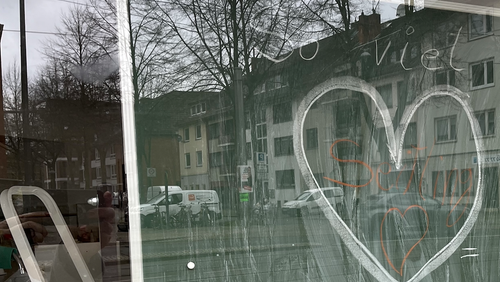 Das ist die Spendensumme, aus der das Café Handgestrickt schon vorab Wolle, Decken und Kinderjacken kaufen, warme Baby-Ausstattungen, Schals und Socken für Verletzte stricken, und alles mit Schokoladen-Nikoläusen und Selbstgenähtem verpackt zu Weihnachten nach Charkiw schicken konnte.