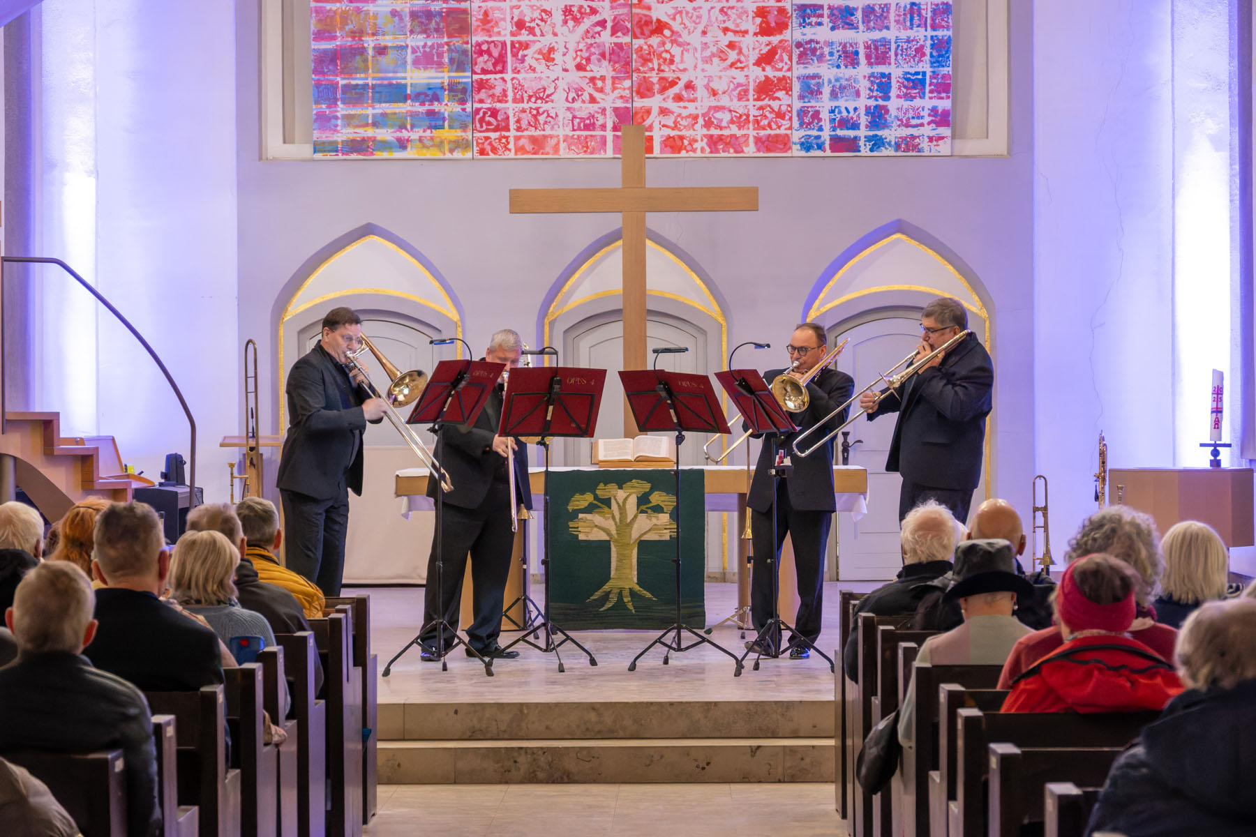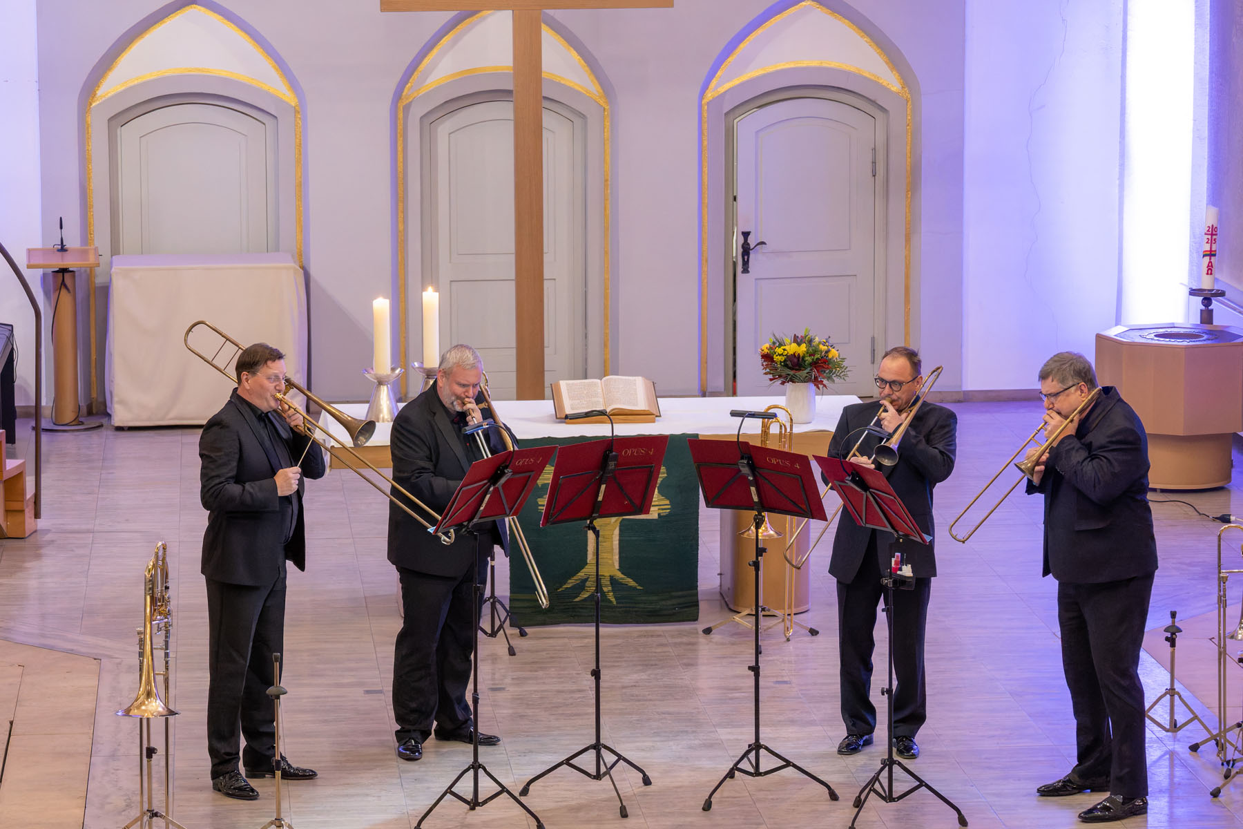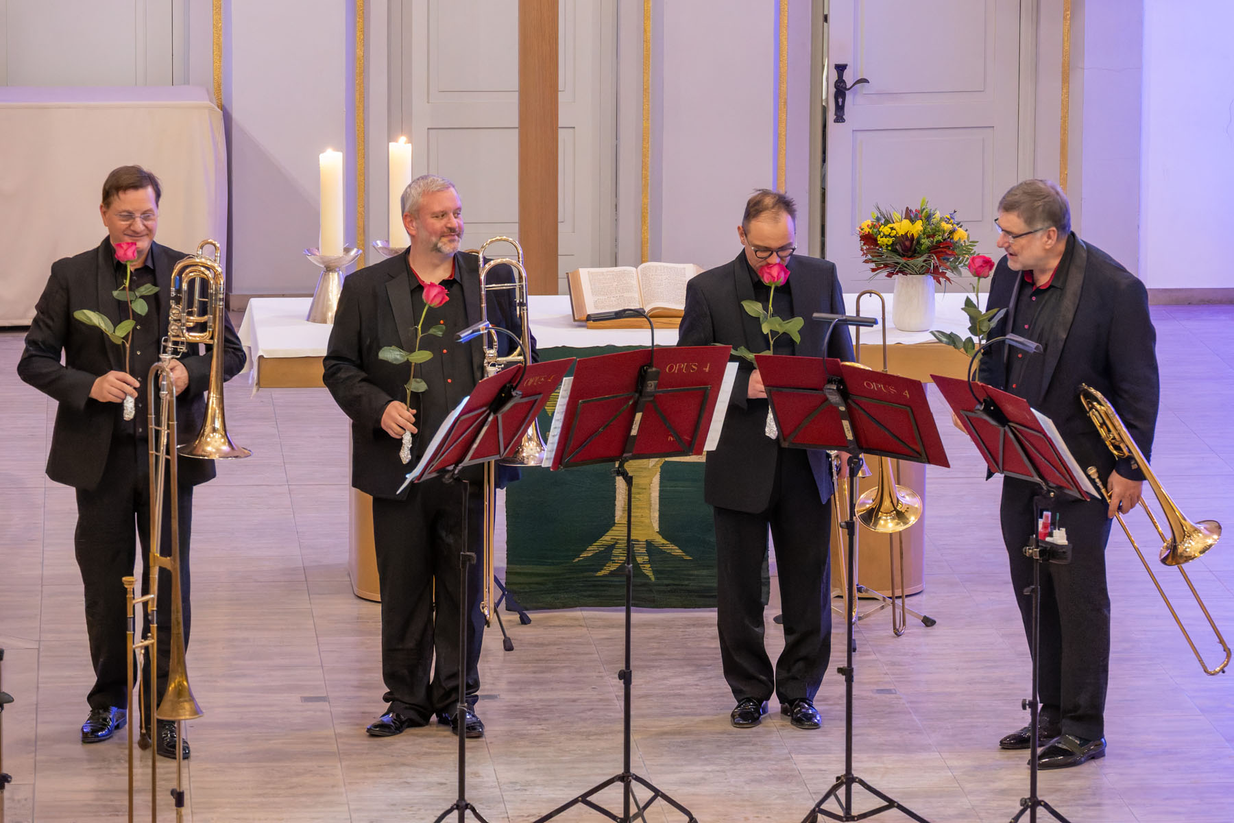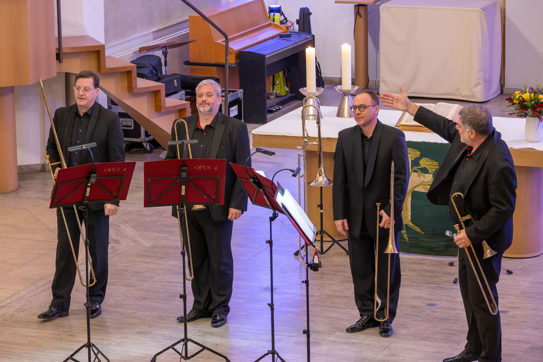 Die vier Musiker des Posaunenquartetts OPUS 4 begeisterten das Publikum am 15. November 2025 in der Pauluskirche mit einem ungewöhnlichen Programm. Klaus Böse hat einige Eindrücke in Bildern festgehalten...