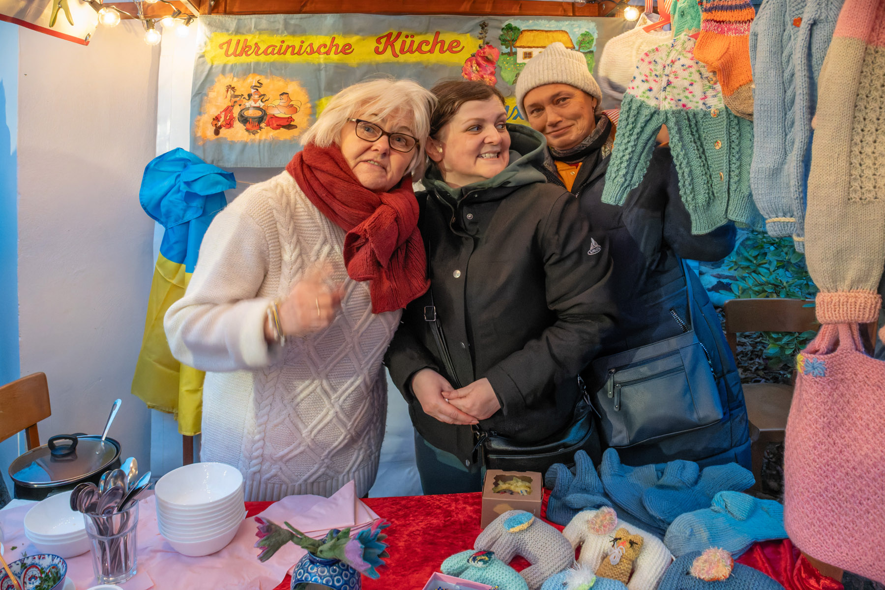 Baby-Overalls, auf-knüpfbare Socken für Verletzte, Sitzkissen, Decken, kleine und große Elefanten, genähte Kinder-Loops - seit Monaten leidenschaftlich erarbeitet im Café Handgestrickt (und Freundinnen des Projekts) - und nun geht all das, ergänzt durch Fleecejacken und Schoki-Sternen, in 23 Paketen als Vorab-Weihnachtsbotschaft unserer diesjährigen Winter-Spenden-Kampagne auf den Weg! Am 03. Dezember übernahm Olga Pischel von der Städtepartnerschaft Steglitz-Zehlendorf die Weihnachtspakete und sorgt für sicheren Transport und die Übergabe in Charkiw.