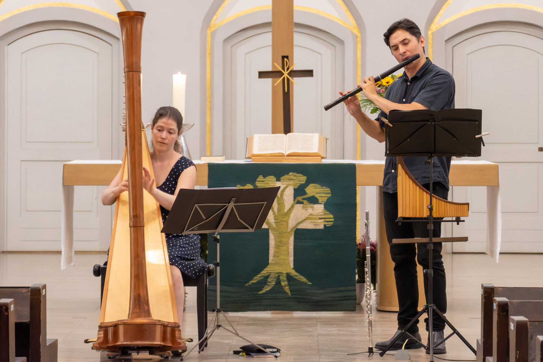 Panflöte und Harfe - himmlische Musik, Wiedersehen, Kaffee und selbstgebacknener Kuchen und obendrein ein herrlicher Sommertag: alles war bereit für den tradionellen Dorfkirchen-Sommer am 03. August 2024. Klaus Böse hat fotografiert. Danke an ihn und an Beate Michaelis und alle anderen Helferinnen und Helfer.