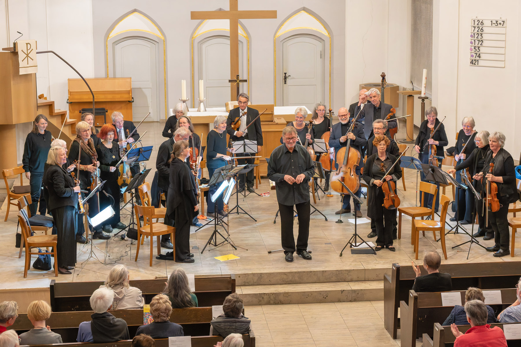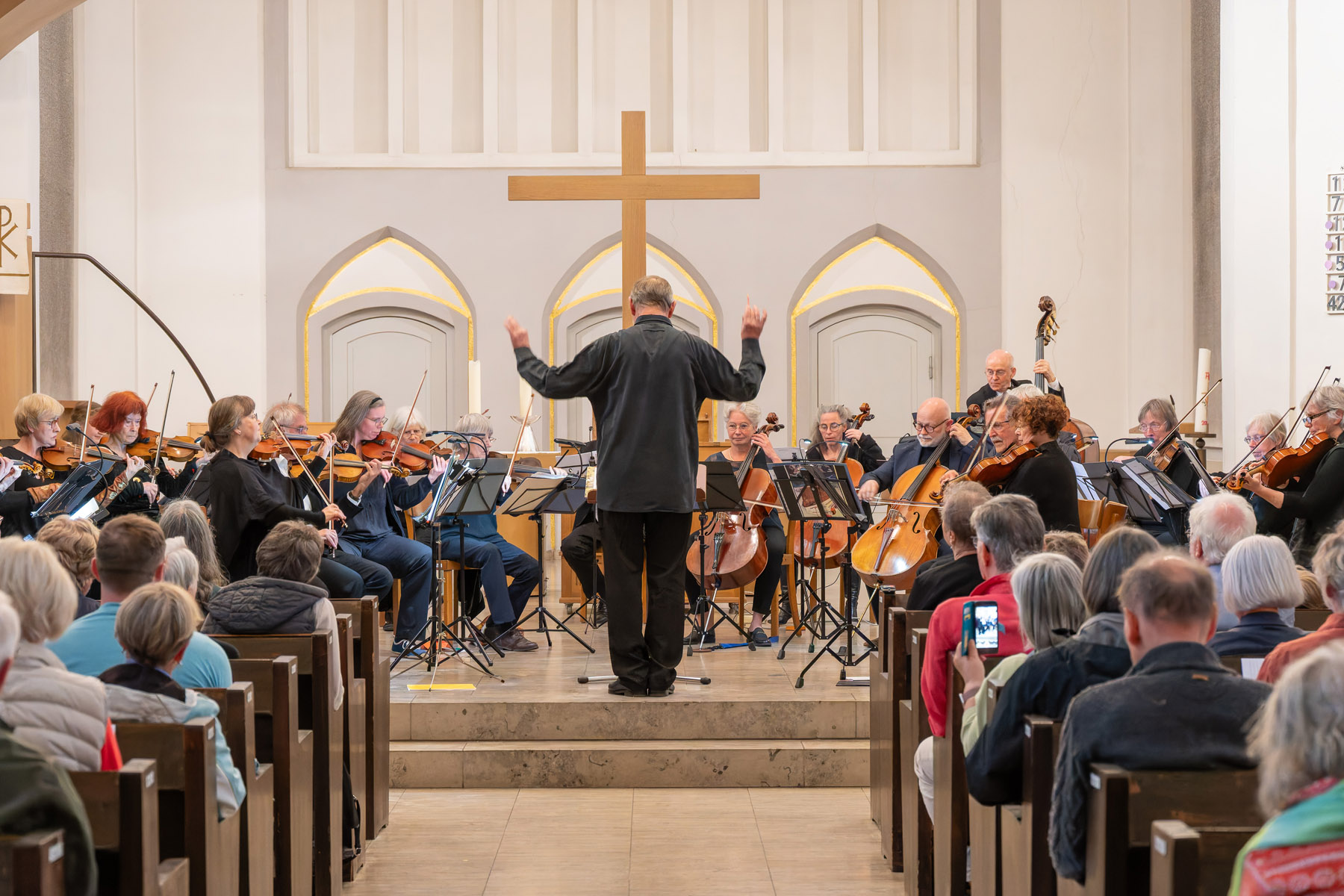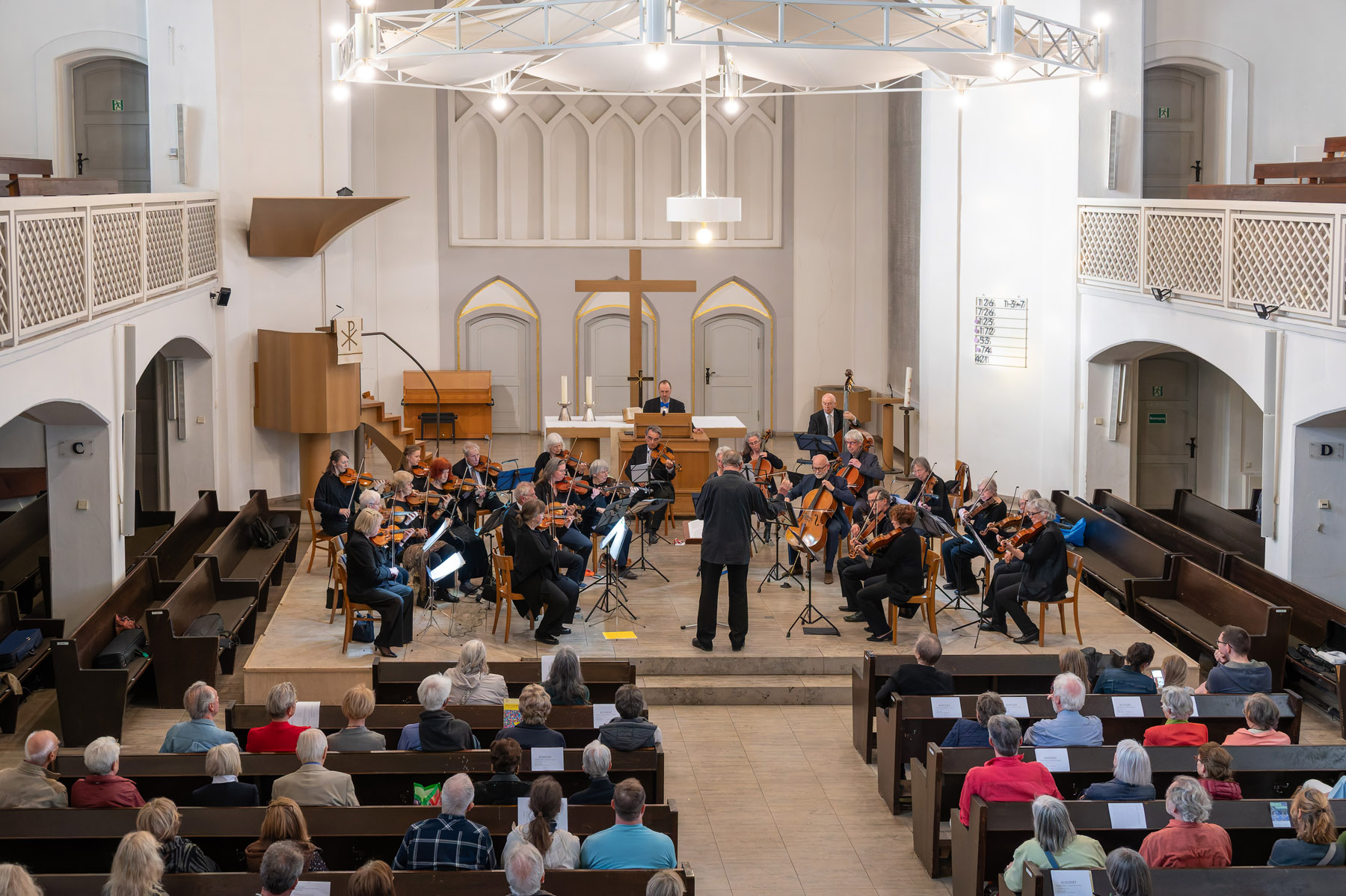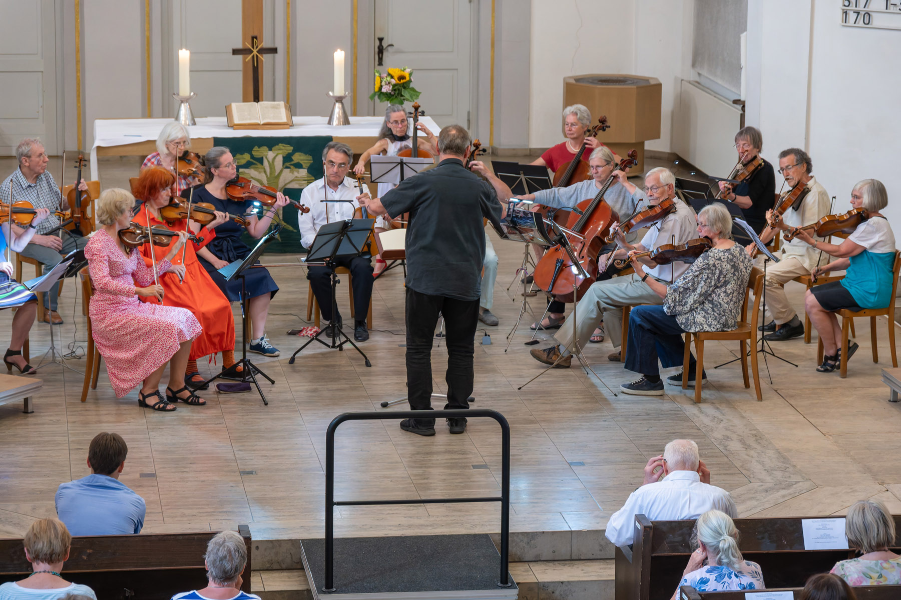 Das Paulusorchester hatte in die Pauluskirche geladen, und viele sind gekommen, um den Klängen der Musikerinnen und Musiker unter der Leitung von Professor Greiner zu lauschen. Klaus Böse hat Bild-Eindrücke eingefangen.